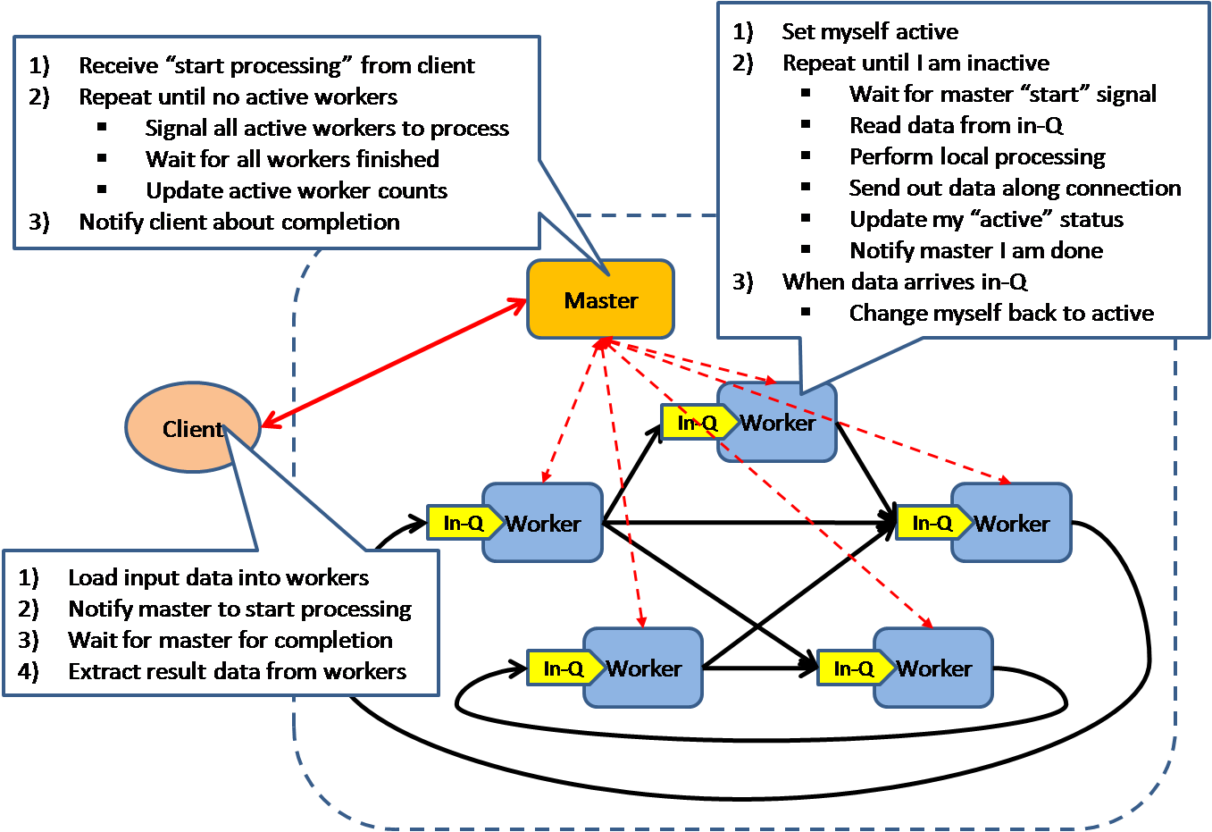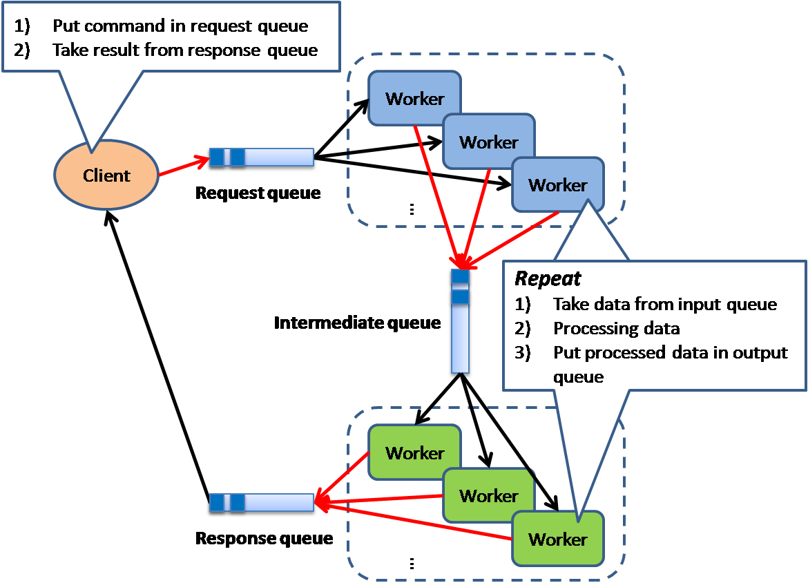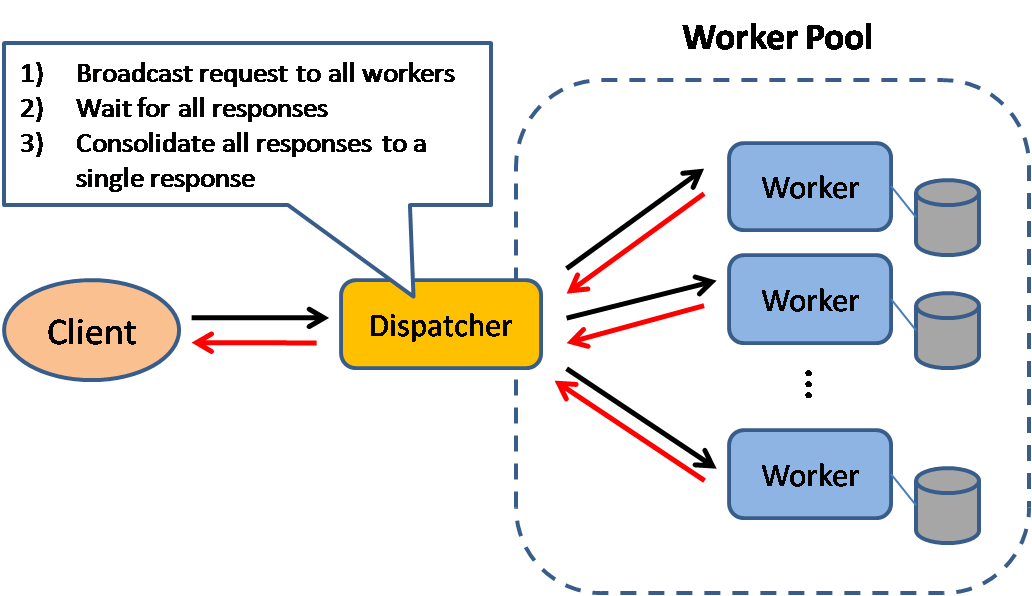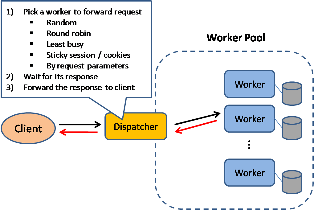 تمامی درخواستهای ورودی به سیستم از طریق توزیعکننده بار بهتمامی سیستمهای دیگر منتقل میشود و به این صورت بار در بین سیستمها بهصورت اشتراکی پخش میشود.